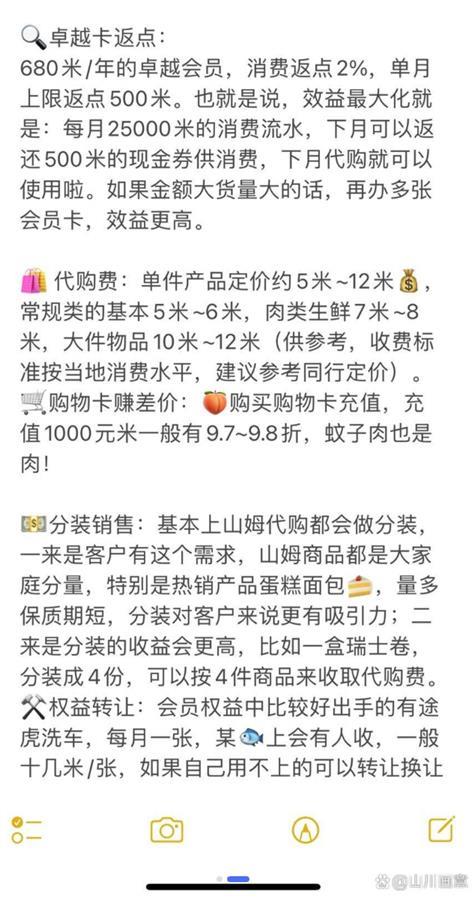 除了线上下单,线下购买还可以通过带领人进店结账的方式赚取带入费、回馈金和结账折扣。山姆代购表示,今年9月申请优秀会员卡后,一周内就会回到原来的样子,这个月通过代购赚了5000多元。收入较多的采购还将开始教学,开发采购团队。