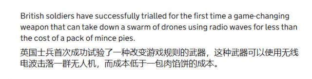 英国国防部成功测试了一种新型的“颠覆性武器”,可以低成本击落无人机群