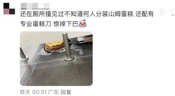 这一事件的原因是,一些消费者表示,他们在广州山姆遇到了一些在厕所里装蛋糕的人。这个蛋糕类似于山姆卖的“焦糖饼干千层”,发生在12月8日。由于时间紧迫,当事人出现时,他们没有在厕所里离开。