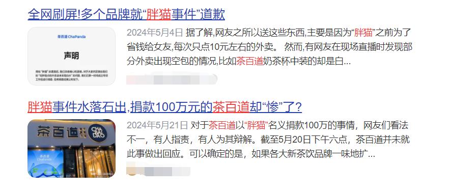 蜜雪冰城、茶百道、华莱士等等,随着舆论的不断发酵。品牌纷纷发声道歉,茶百道更是捐赠100万元以“胖猫”的名义增加适用于关爱青少年类公益活动。