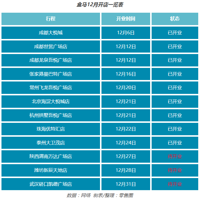 加速下沉!盒马12月新开10多家门店