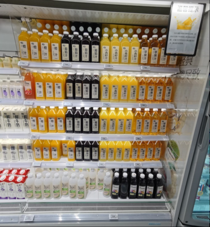 评价:在冷藏饮料的分类(包括冷藏果汁和冷藏鲜奶)中,与JD.COM七鲜OEM系列相比,盒马鲜生OEM系列在产品丰富度和外包装价值上明显领先JD.COM七鲜。同时,通过现场试用类似的产品,笔者个人认为盒马鲜生产品的口感比JD.COM七鲜好。