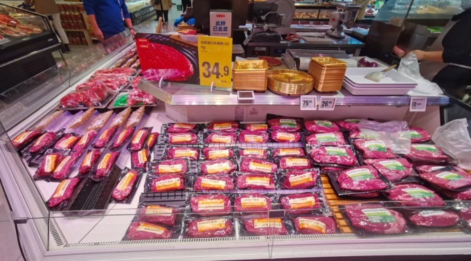 评价:盒马鲜生于进口安格斯谷牛肉和鲜切牛肉的操作中,丰富度明显优于JD.COM七鲜。同时,盒马鲜生在牛肉分类上形成了不同烹饪方式的炖、煮、烤、炸、涮商品矩阵,非常多样化。