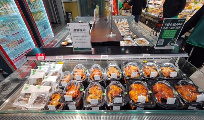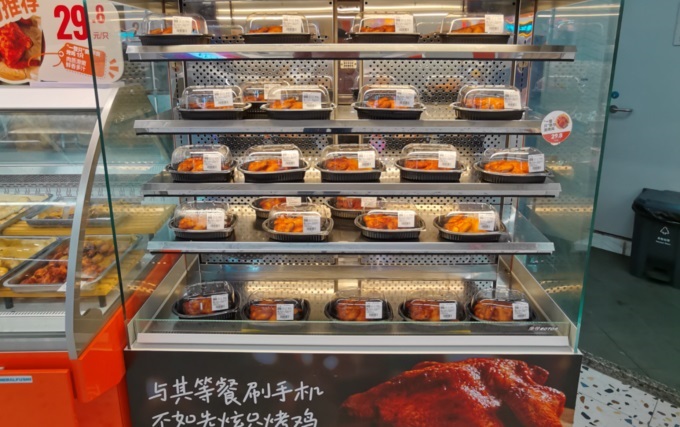评价:JD.COM七鲜在熟食品类中的经营主要是单品经营,缺乏熟食品类矩阵。整体品类缺货严重,品类多样性严重不足,导致竞争力差。相反,盒马鲜熟食品在经营中形成了清晰的烤、炸、卤等商品矩阵,产品质量和丰富性都很好,让人有很大的购买欲望。