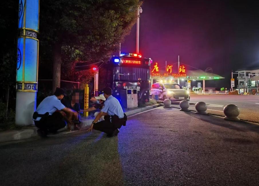 2024年9月14日20时20分左右,江明峻领导在辖区内夜巡。当他走到黄岗街附近的一条路时,他发现一个男人坐在路边,表情呆滞,情况异常。过往的车辆呼啸而过,非常危险。江明峻遂便咨询了一下,发现该男子存在智障问题,无法正常沟通,经走访附近居民,均无人知晓。他分析判断这个人可能是一个迷路的人。为了安全起见,他先把他带回派出所,暂时安顿下来,为他提供食物和开水来满足他的饥渴。