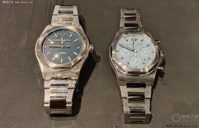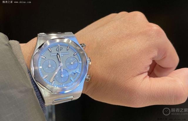 这个冰蓝面荣誉计时表,连续系列一如既往的设计,选择 42 Mm刚性表壳与巴黎装饰钉纹盘相结合。冰蓝色作为近年来的热点,广泛应用于劳力士迪通拿、爱彼皇家橡树等运动表中,市场走势居高不下。GP 以冰蓝色为“隐藏款”的荣誉系列计时表,借助这种配色的热度,将产品的吸引力推向新高。