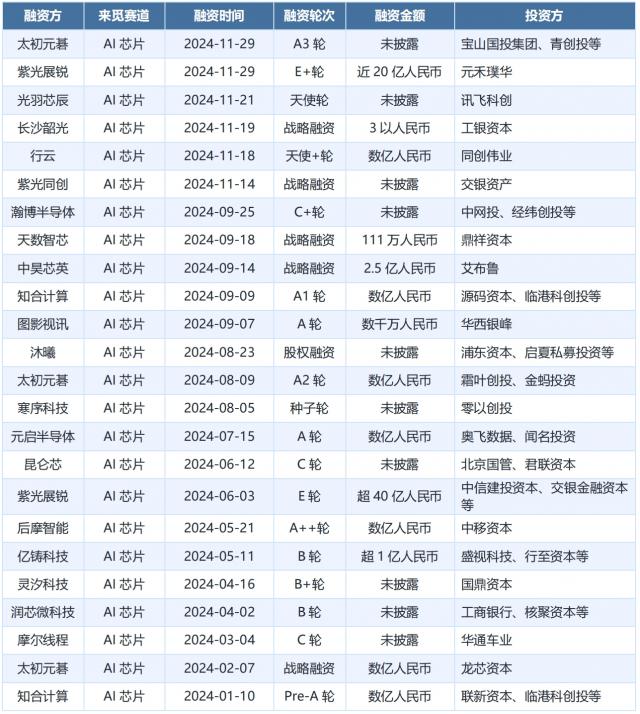 图表 3:2024 年至今 AI 芯片投融领域的情况
