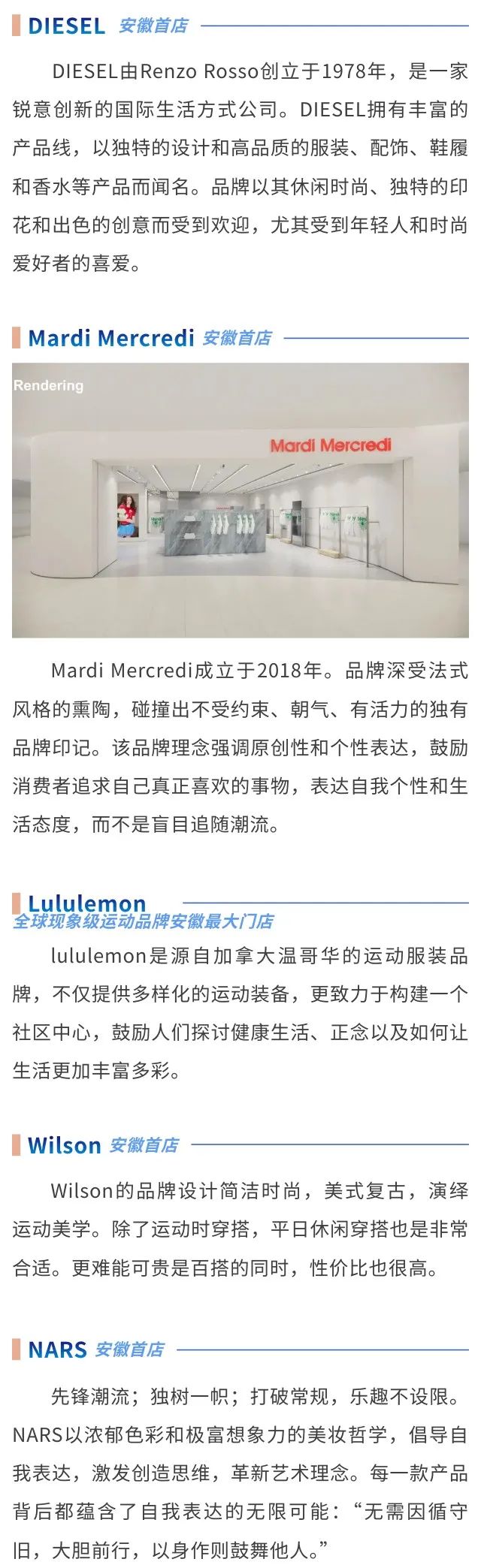 据悉,合肥银泰in77业态涵盖名品、零售(户外活动、美容、服装)、餐饮和生活设施,包括音乐派KTVKTV在内的第一家店铺引入率达到30%。、麻六记、左稻、山野板扎、苏小柳、小江溪、南山翁等,以及HAHAHA 安徽首展、黄玉龙艺术展、安徽首展等LULU当代潮流艺术展,将满足市民多样化、优质化的生活需求。