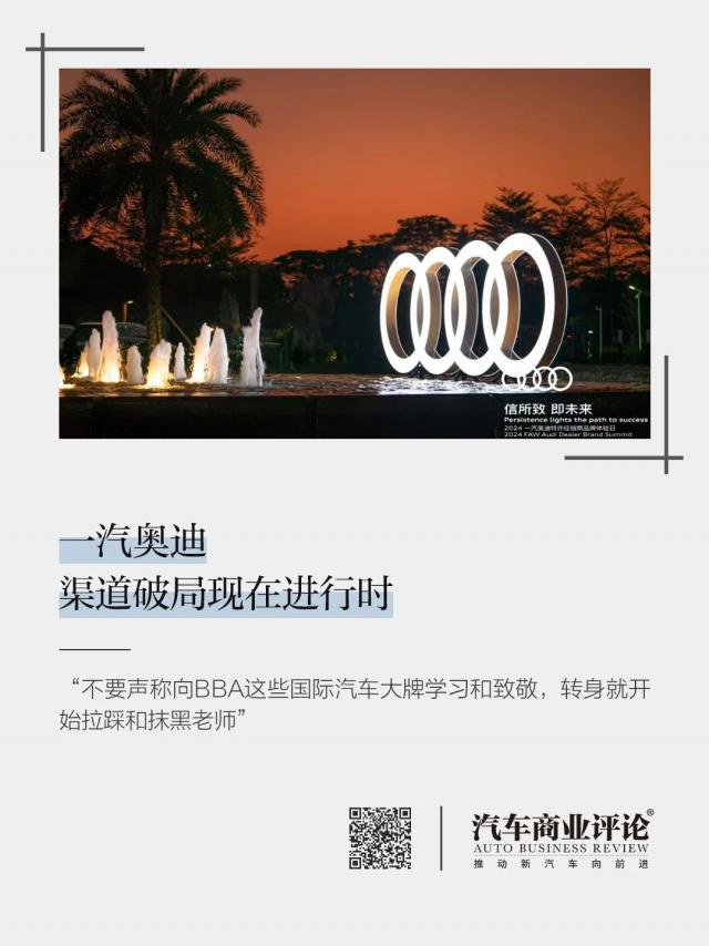 一汽奥迪表示,将进一步调整渠道战略,从减少网点数量,转变为增加资产、减少管理单位。在资产优化方面,高资产大型大型资产将在规模合适的网点用轻量化终端更换。 4S,以轻量级终端更有效地覆盖;在渠道代谢调整过程中,支持区域优势投资者就近发展,形成投资者辖区,协调辖区内运营,减少不必要的内卷;在降低管理单元的同时增加渠道覆盖面。