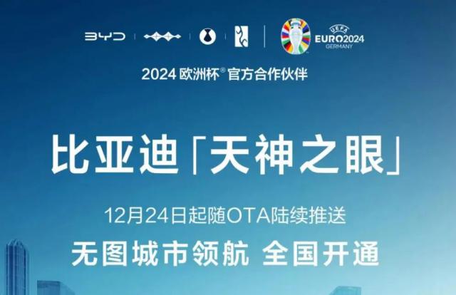 12 月 24 日本,比亚迪官方微信宣布,比亚迪高级智能驾驶辅助系统“天神之眼”在全国范围内正式开通无图城市领航。(CNOA)功能可以实现“全国都可以开,有路就容易开”。无论是城市道路还是乡村道路,都能为用户带来更安全、更便捷的智能驾驶体验。