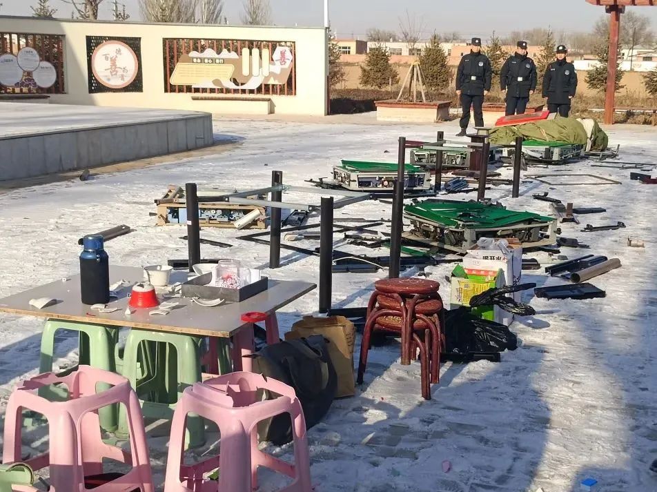 1、震惊赌博工具销毁现场!12月19日,盐池县公安局花马池派出所和花马池镇在长城村孝善广场举行集中销毁赌具行动,集中销毁近期依法收缴的五台麻将机、十副麻将等赌具。在现场指挥官的命令下,一台台麻将机瞬间千疮百孔。现场,警方以案释法,向围观者讲解赌博带来的危害,引导教育群众自觉抵制赌博、远离赌博等违法犯罪行为,并主动向公安机关举报相关线索。警察和人民共同努力,维护正直的社会氛围。另外,警方还进行了防范电信网络诈骗、防盗、防火、禁毒等安全宣传,进一步提高了广大群众的安全意识。(@平安盐池)