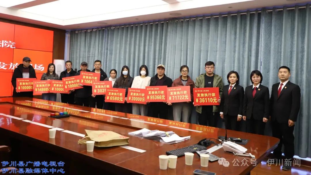 12月20日,伊川县人民法院在执行指挥中心举行集中发放涉农民工工资案件的仪式,为及时履行胜诉当事人的合法权益,着力解决群众“急难忧”问题,共发放11名农民工工资款97.2万元。