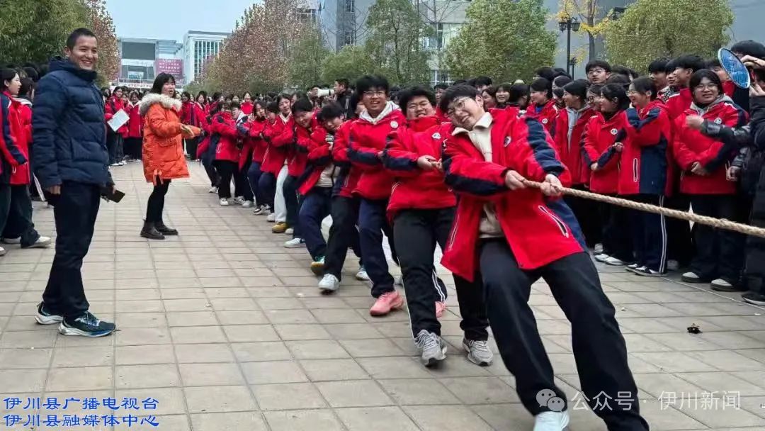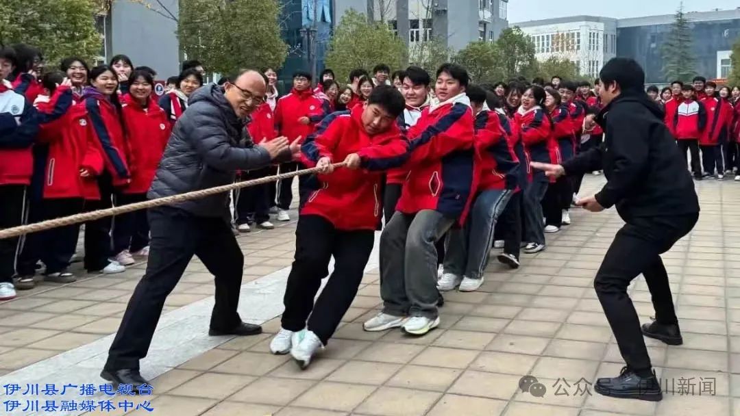 为了丰富校园文化生活,增强学生体质,培养团队合作精神,伊川滨河高中近日积极响应冬季体育锻炼号召,举办高一冬季拔河比赛。