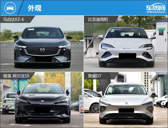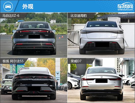 虽然四款车都定位为中型车,但在外观设计上要么运动时尚,要么个性新潮,总之都很懂得取悦年轻消费者。在这些人中,我个人感觉荣威 D7 正面设计有些过于激进,可能需要客户有独特的审美才能接受。马自达 EZ-6 “相貌”非常在线,而且认可度也相当高,毕竟“魂动”设计语言的魅力确实不用多说。另外两款车型,比亚迪海豹更有现代感,而极狐阿尔法 S5 也就是更强调营造运动感。