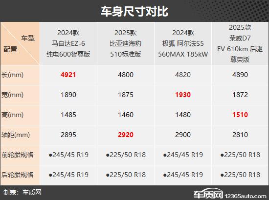 尺寸方面,四款车都有自己的参数和技能,没有人愿意落后。就中型车的定位而言,四款车的尺寸性能可以令人满意,但在竞争激烈的市场环境下,难免会出现很多“不讲武功”的车型。例如,比亚迪海豹拥有 2920mm 轴距,与荣威相比 D7 直接多久出 110mm,这让后者情不自禁?