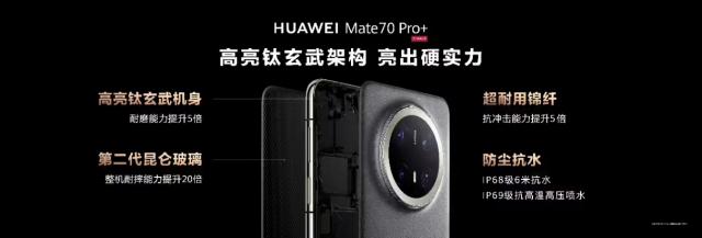 具体而言,华为 Mate 70 该系列配备了全新升级的高亮钛玄武架构,进一步刷新了旗舰机的可靠性标准 —— 正面配备第二代昆仑玻璃,可以提高整机的防摔技能。 20 倍,轻松应对日常使用中的意外坠落;行业内首次推出高亮钛框架,提高抗摔技能 1 倍,提高耐磨性 5 倍;背面采用超耐用的锦纤材料,提高抗冲击能力 5 而且耐污染,耐用。