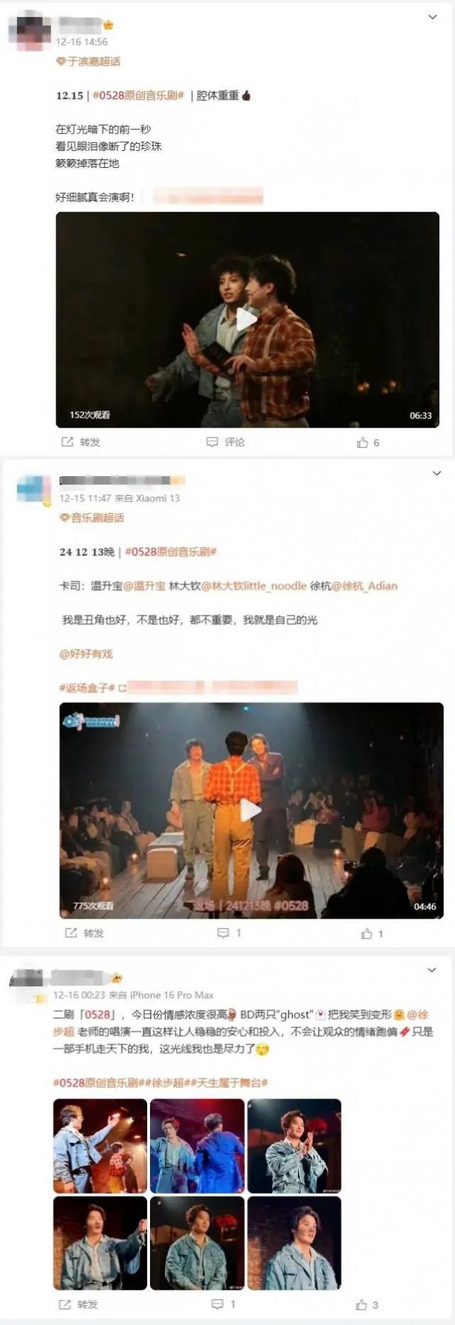 (微博网友截图分别来自微博网友。 @39 没有药,@嘟嘟去看音乐剧。 _ 驻沪版,@叶会掌纹)
