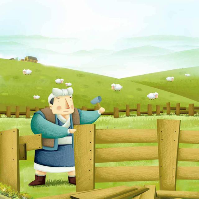第二天早上,他发现又少了一只羊。原来,狼又从洞里钻了进来,拿走了一只羊。他后悔没有听从邻居的建议,于是迅速堵住洞,修好了羊棚。从那以后,狼再也不能进入羊棚了。