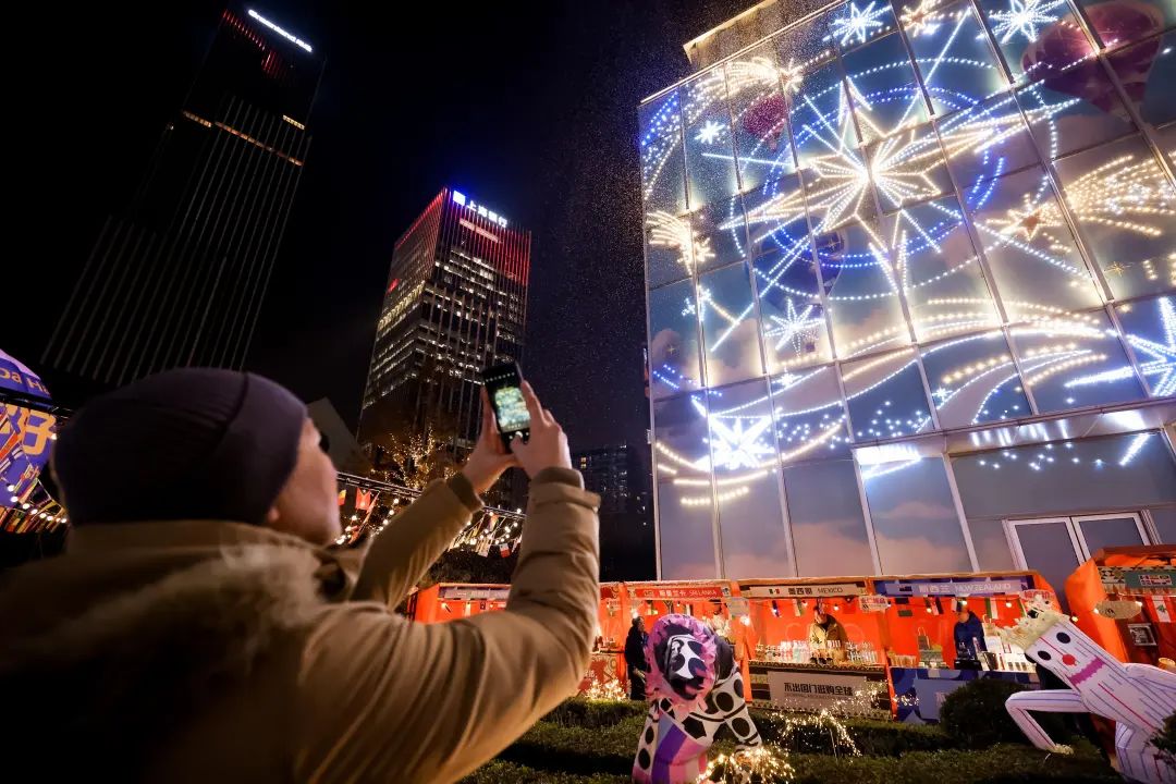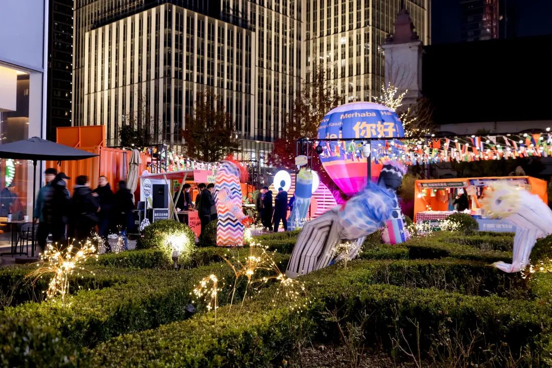 12月24日晚,在上海南外滩董家渡核心区,灯笼高挂,霓虹灯闪烁。绿地外滩中心中央花园对外开放,“潮玩生活节”系列促进消费、惠民生活活动正式启动,为市民带来了精彩的新年文化盛宴。