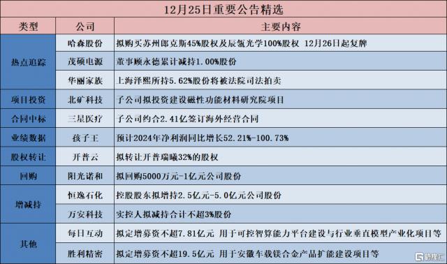 14、公告优选︱哈森股权:拟购买苏州郎克斯 45% 还有辰战光学的股权 100% 股份 12 月 26 日起复牌;