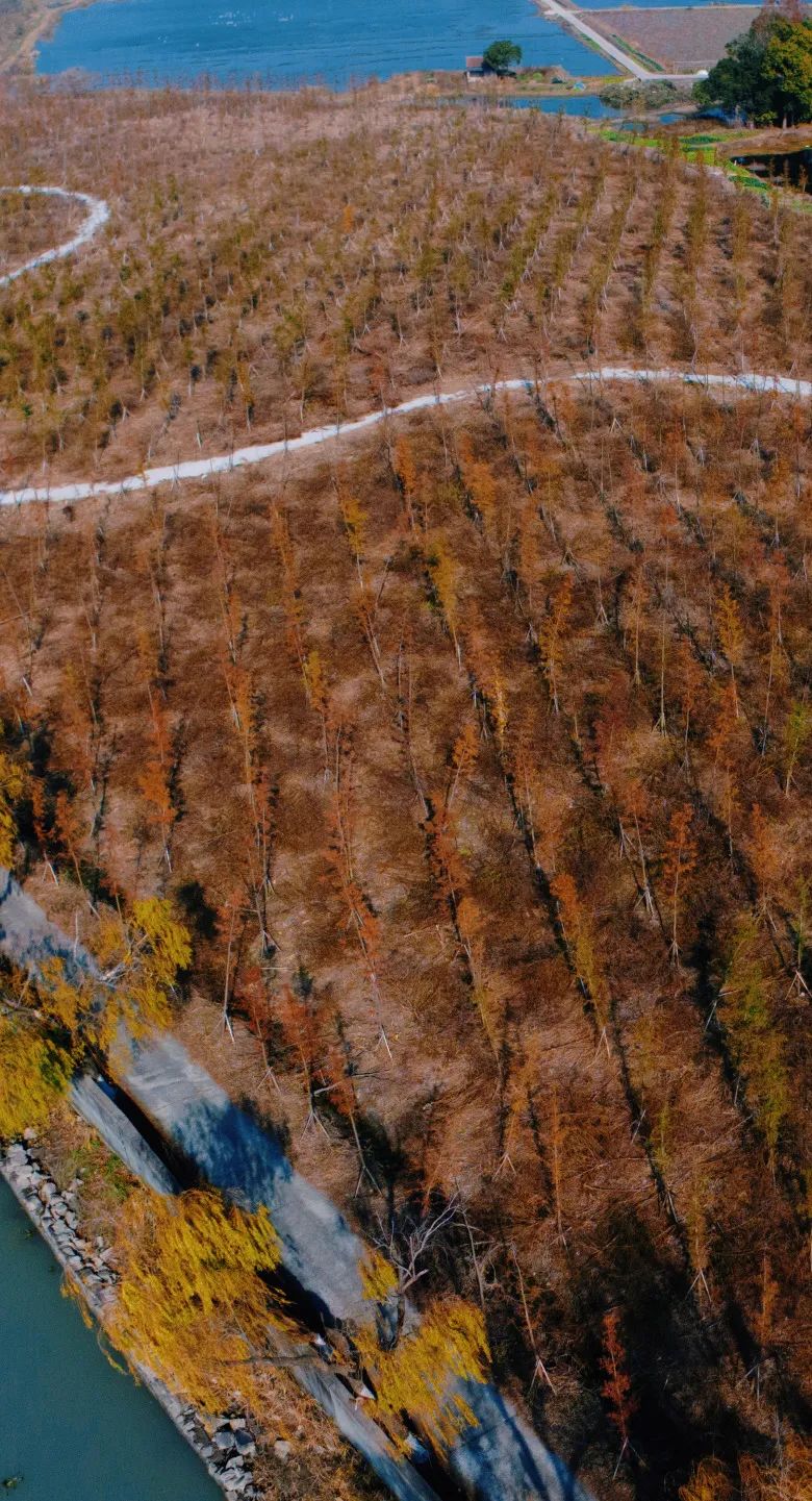 秋去冬来,棕红色的枯叶在阳光下闪耀着热情的光芒,将冬天的魅力渲染到了极致。水杉、芦苇、乌龟、垂柳...都以自己的方式装饰着这个季节,热情的红色、深蓝色、绿色...汇聚成一幅五颜六色的冬日画轴。