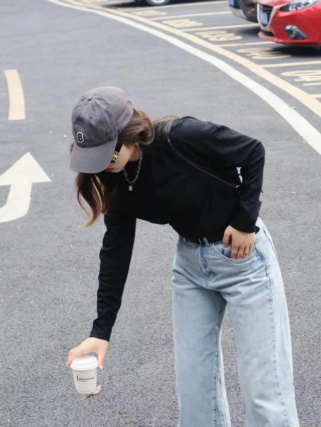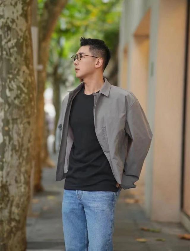 一个低温天气 T t恤轻松出门,再配上减温外套也很百搭。 墨镜一带