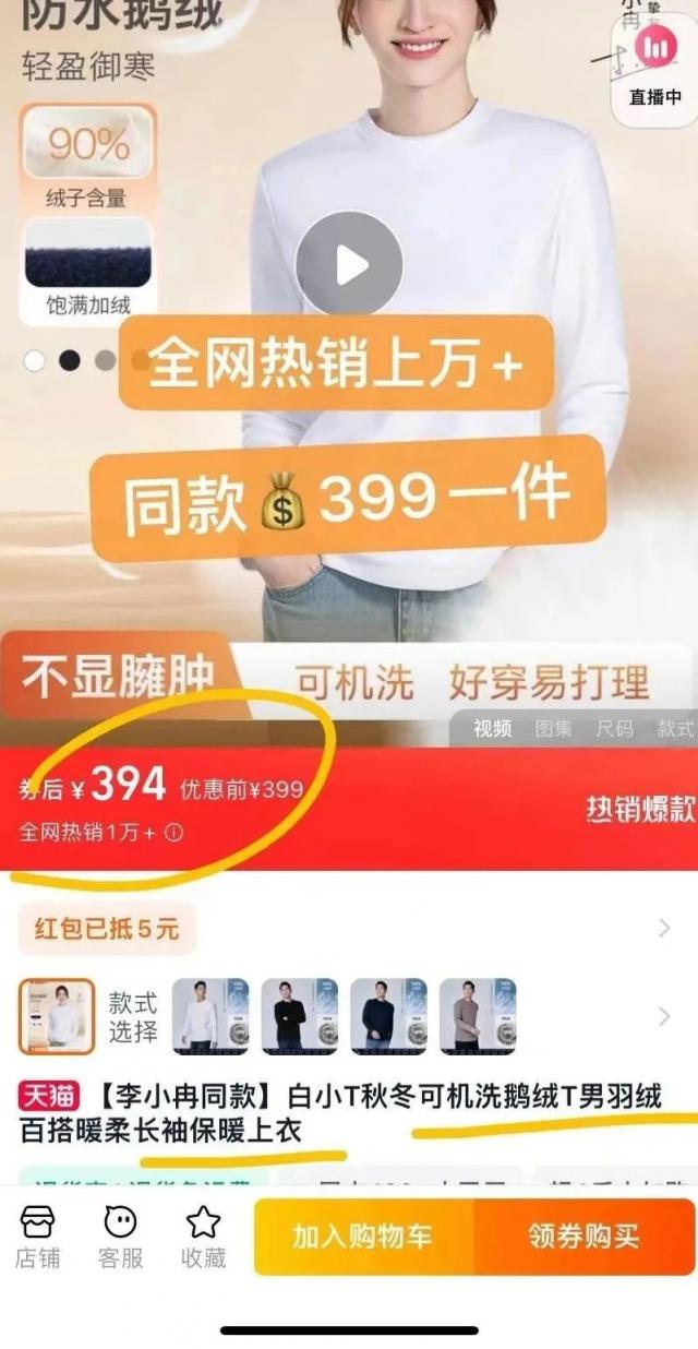 没错 原版本就是我们 李小冉代言的399鹅绒白小 T,销量已经 2 万➕了