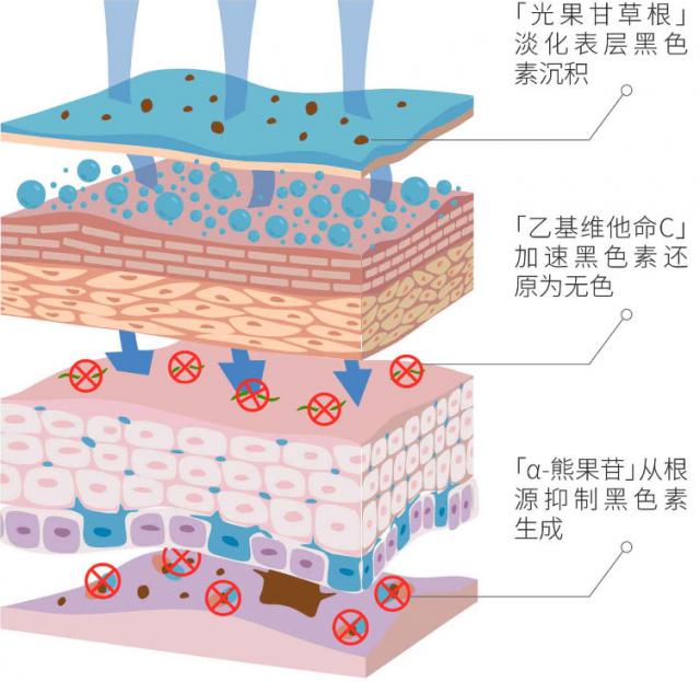 分别从表层、中层、基底三个维度,层层改善暗沉。