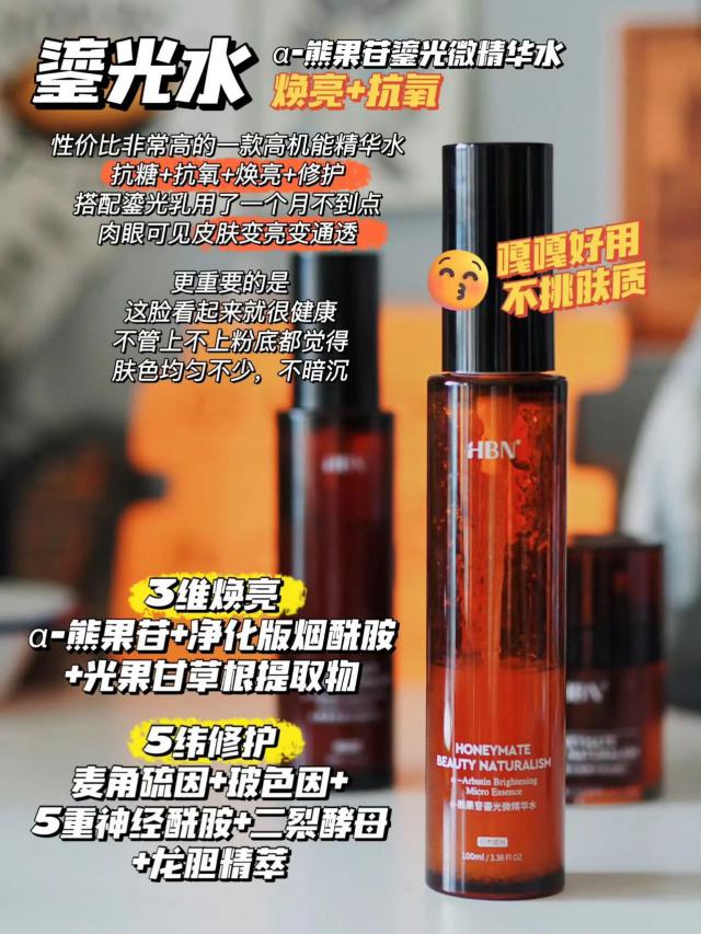 HBN ·α - 熊果苷镀光微精华水正是这样一位王者,让你素颜也能“发光”。
