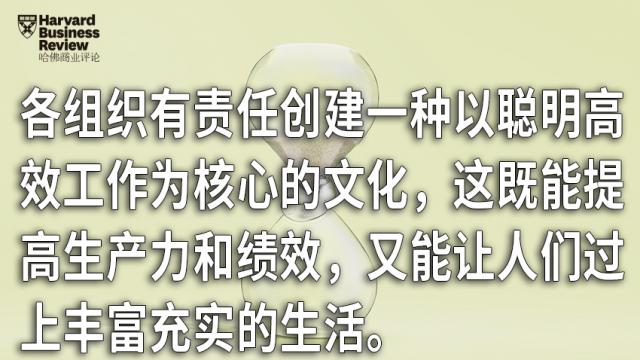 因此,每个组织都有责任建立一种以聪明、高效工作为核心的文化,这样不仅可以提高生产力和绩效,而且可以使人们过上丰富而充实的生活。