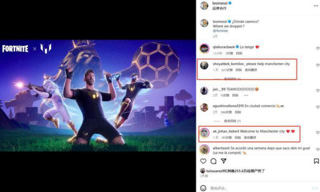 大量曼城球迷在梅西社媒留言区对梅西说:“请帮帮曼城。”、"曼城需要你。"、"求你了,我们还是想看看你在五大联赛踢球。"、"哈兰德正在等待你的传球。"、"你一来,曼城的攻击就活了。"