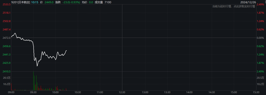 十二月二十六日上午,日本航空股价暴跌,一度跌破2%,盘初此股曾标红。