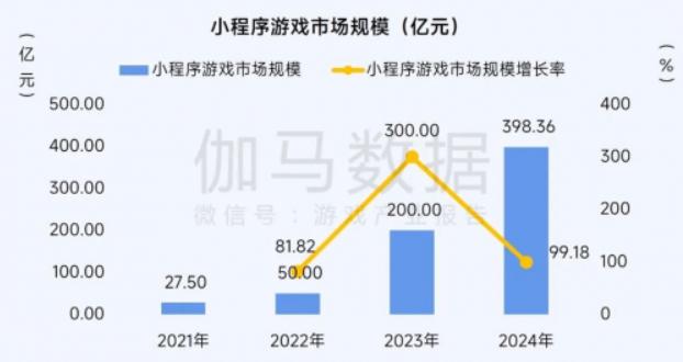 今年年底,2024年中国游戏产业年会在12月12日至13日举行,《2024年中国游戏产业报告》显示,小游戏市场数据再次震惊市场,2024年游戏市场收入398.36亿元,同比增长99.18%。
