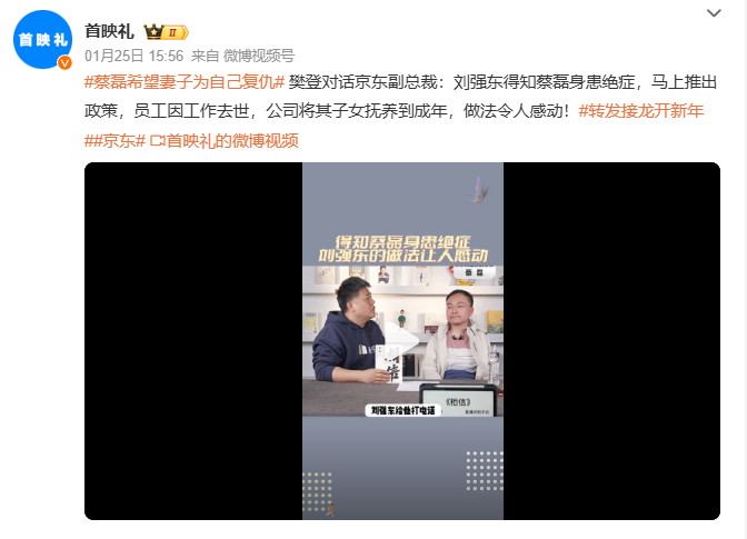 2019年9月30日,41岁的JD.COM副总裁蔡磊被诊断为逐渐冻结。刘强东得知后,特意打电话给蔡磊,问了一个问题:我能帮到你什么吗?