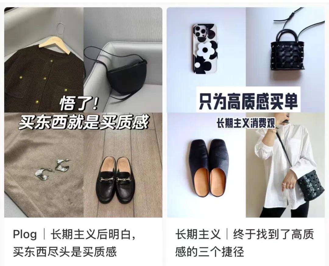 这群中产阶级主要推广一个“人到中年,不吃‘便宜’的痛苦”。购物前搜索关键词加长期主义,注意衣食住行。从“一件可以穿20年的外套”、可以用三年不坏的手机,可以当传家宝的手镯。