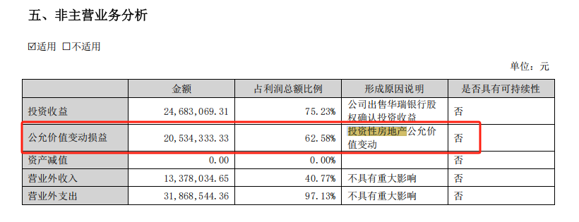 与此同时,由投资性房地产公允价值变动引起的“公允价值变动损益”金额高达2053.43万元,占2023年美邦服装总利润的62.58%。