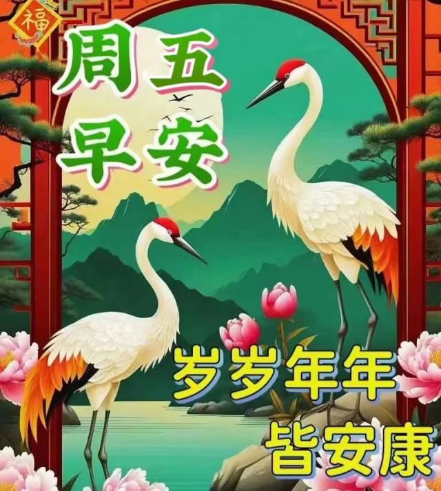 早上好!早上的宁静是一份宝贵的礼物。愿你的健康像早晨的新风,吹拂一切不愉快;愿幸福如露,点缀你的生活;愿和平像晨光,驱散夜晚的阴霾;愿快乐像鸟儿的歌声,陪伴你一天。星期五早上好!
