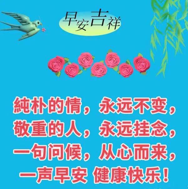 亲切的问候,温暖的每一天。真诚的祝福,心中的甜蜜。早上好,就像见面一样。互相关心,永远幸福。早上是一首歌,写着幸福的话,写着幸福的歌,写着幸福的音乐,写着幸福的音乐,画着烦恼的休息符。愿你以轻松的姿态唱出不一样的幸福,不一样的精彩!新的一天,祝家人朋友健康、幸福、安全!早上好!