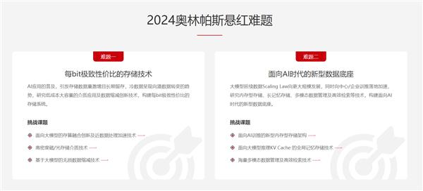 华为表示,本届奥林帕斯奖将以处理为重点。 AI 随着时代数据规模的爆炸式增长,数据价值的不断上升, xPU 与存储带宽不足、计算率集群可用性低、推理时间增加、数据存储成本急剧增加等挑战相比,全球研究人员公开征集答案。