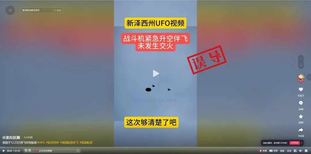 据社交媒体报道,美国航空公司停飞航班是由“不明飞行物”引起的。(UFO)结果。抖音中流传的一段视频声称在美国新泽西州拍摄了“不明飞行物”,“战斗机紧急起飞,没有战斗”。