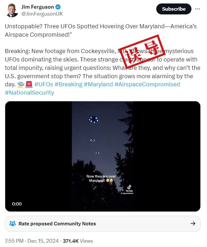 与此同时,TikTok、YouTube、越来越多声称在新泽西州周边拍摄的无人机和不明飞行物目击视频相继出现在X等平台上。审查发现,这些视频中有相当一部分应用了旧视频,然后后期制作。