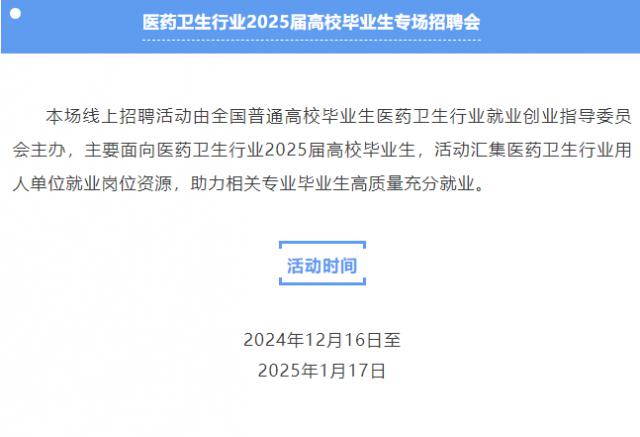 对教育部“秋季校招月”工作部署,我国大学生就业服务平台积极响应,密切关注就业关键期,12 “医疗卫生行业将于月下旬上线” 2025 大学毕业生专场招聘会""""""""""""""""""""" 2025 全国高校本科毕业生特别招聘会”“汽车行业面向” 2025 大学毕业生特别招聘会“面向西部地区的毕业生特别招聘”等 5 现场招聘活动,全力推动高校毕业生就业。