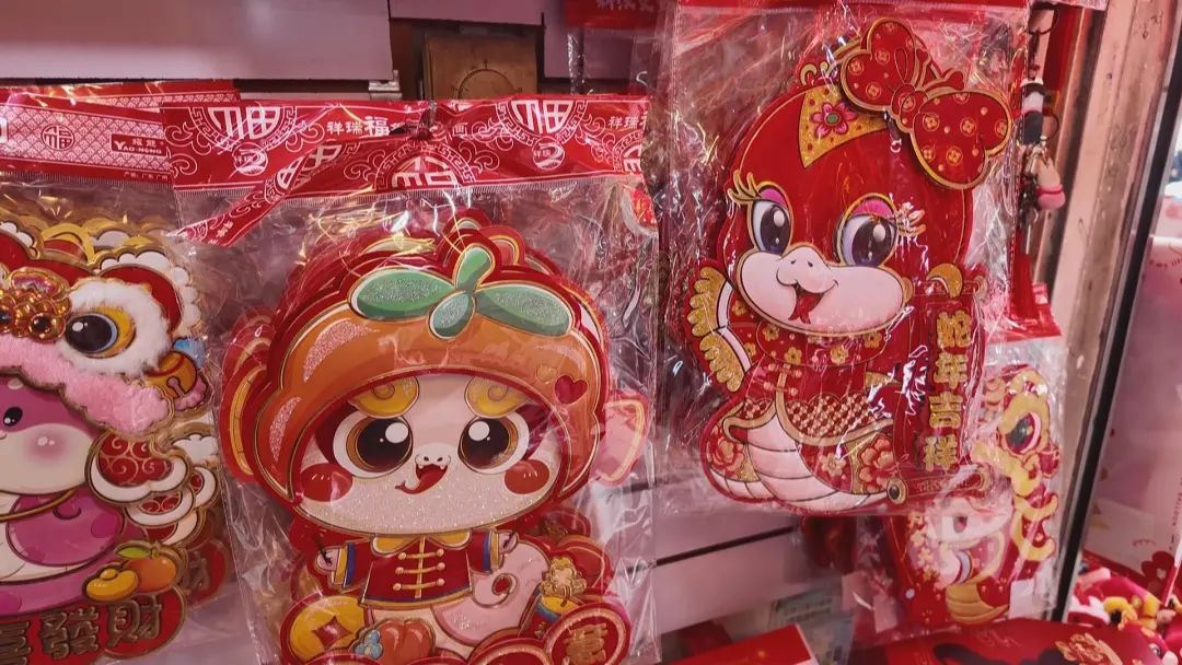 另外,记者还发现,今年蛇年的商品种类比往年更加丰富多样。除传统蛇元素外,还融入了醒狮等元素,创新性地推出了家居小饰品等全新品类,满足了消费者多样化的需求。许多市民表示,这些蛇年元素商品不仅为节日增添了喜庆气氛,而且是传统文化的传承与表达。它们承载着人们对新年的美好祝愿和期待,使这个春节更具意义。
