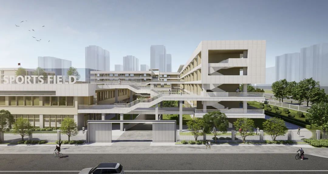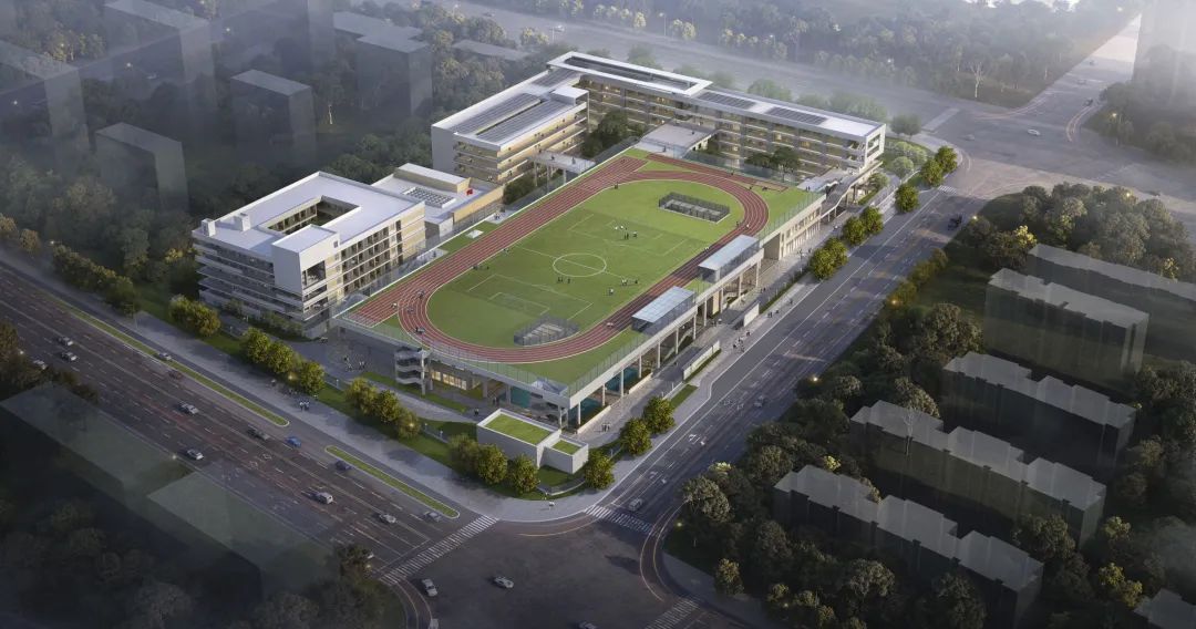 学校办公楼屋顶除了常规的教学楼、多功能厅、学生公寓外,还创新设计了一个面积约10,000平方米的全覆盖空中操场。