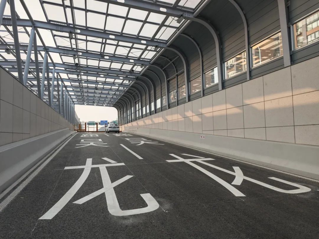 在银都路隧道入口处,新的沥青路在阳光的照射下微微发光,路边的绿化带修剪整齐,标志和交通指示灯已经安装好。通车前一天,记者在现场看到,徐汇交警正在检查即将通车的隧道。