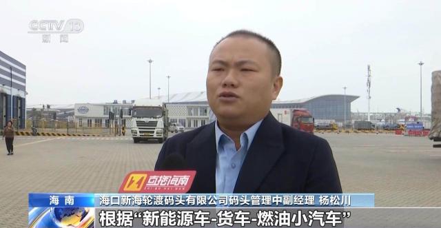 码头管理中心副经理海口新海轮渡码头有限公司 杨松川:在两港区倾注注 49 船只,实现“人休船不休”的持续稳定发班。第二点是基于“新能源汽车” - 货车 - 燃料汽车“优先级别实施保运计划,动态管理卡车、新能源汽车专班数量。