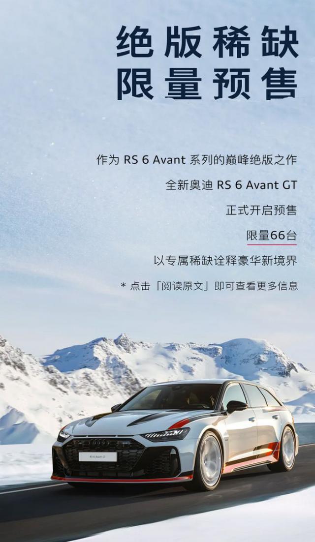 IT 世家 12 月 27 昨日,奥迪官方微信官方账号(12日) 月 26 日本)发布博文,宣布奥迪 RS 6 Avant GT 预售在国内开始,新车全球限量销售 660 车辆,拥有中国市场 66 车辆配额,有望 2025 年度在国内上市和交付。