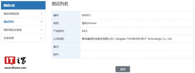 IT 世家 12 月 26 每日消息,产品型号为 ML8 根据以往通过星闪认证的产品发布情况,雷神品牌鼠标已经通过了星闪联盟认证,这款新产品有望近期上市。