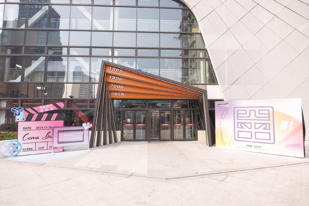 四平路电影院作为几代杨浦人记忆中的重要地标,这次专门将“时间”元素融入到设计中。大门被间隔道推了10年,走进电影院就像走进了“时空隧道”。在电影院的二楼和三楼之间,一句经典的&字在&阶上闪闪发光,与旁边的石库门墙共同形成了一个时间台阶。此外,时间咖啡、时间潮流游戏、时间相馆等怀旧打卡点将以“时间集”IP为主线,带观众回到80年代。
