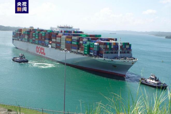 在巴拿马运河等候集装箱货轮 图源|央视新闻